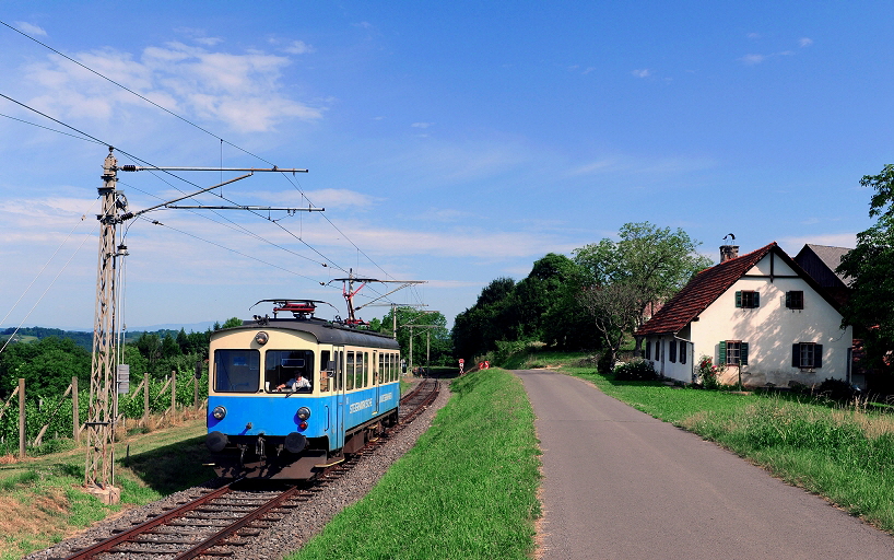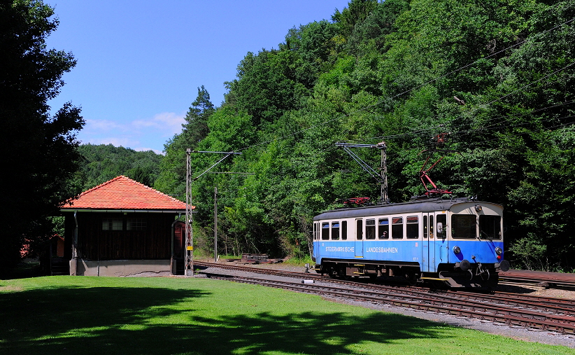 Am Vormittag des 07. Juli 2017 erreicht der ET 1 (Grazer Wagonfabrik, Baujahr 1930) in wenigen Augenblicken die kleine Haltestelle Trautmannsdorf in der Steiermark und setzt nach kurzem Aufenthalt seine Reise bis nach Bad Gleichenberg fort. |