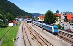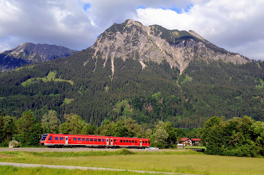 Im Bahnhof von Immenstadt im Allgäu zweigt die Nebenbahn in den bekannten Ferienort Oberstdorf am Fuß des berühmten Nebelhorns (2.224 m) ab.