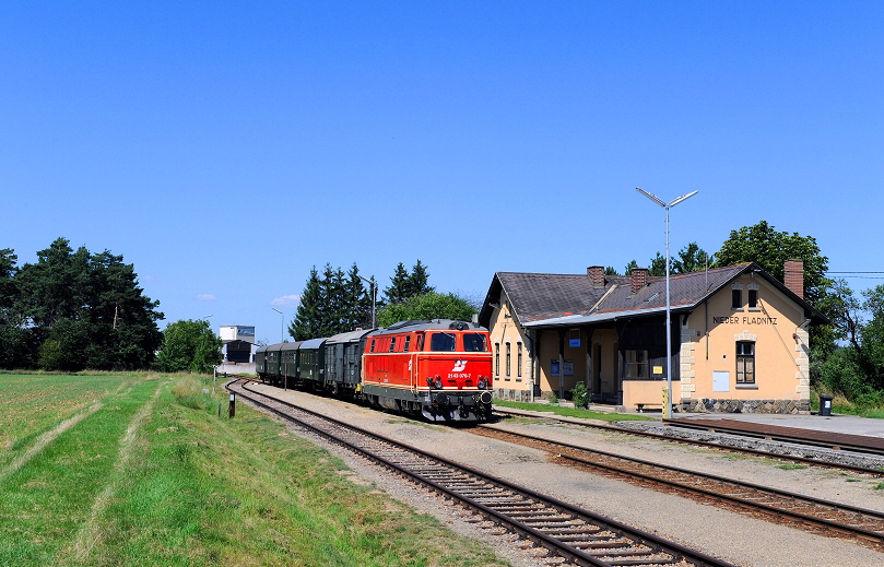 Nach Einstellung des Personenverkehrs durch die Österreichischen Bundesbahnen (ÖBB) am 09. Juni 2001, wird die Strecke seit 2002 von der NÖVOG als Nostalgiebahn mit dem Produktnamen “Reblaus-Express” betrieben.