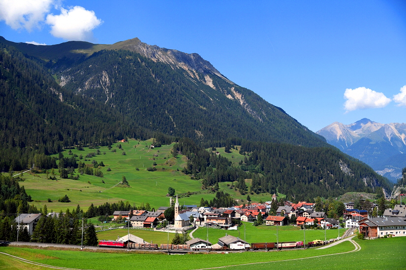 Zu jeder vollen Stunde (Fahrplanänderungen vorbehalten), kreuzen in Filisur die Züge auf der Albulabahn. Dazwischen gibt es immer mal wieder den ein-oder anderen Güterzug. Die Gemeinde Schmitten hat dem Aussichtspunkt eine Bank spendiert. So lässt es sich hier eine Weile gut aushalten.