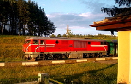 Am 06. Juli 2009 wartet die 77.005-7 mit dem P 16102 auf die Zugkreuzung mit dem P 16103 im Bahnhof von Kostandovo (Foto: Patrick Aulbach)