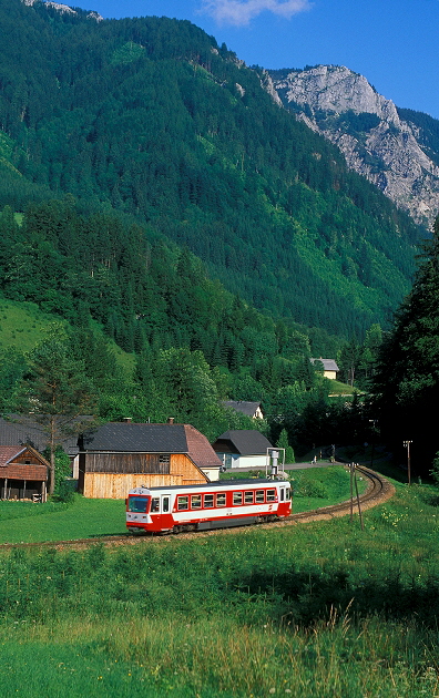 Die 2091.012 hat am 08. August 1994 soeben den Bahnhof von Lunz am See in Richtung Waidhofen a. d. Ybbs verlassen. Seit 1988 enden die Züge der Österreichischen Bundesbahnen (ÖBB) in Lunz. Aufgrund mangelnder Auslastung der Personenzüge und aufwendiger Unterhaltungsarbeiten im Bereich der Bergstrecke über den Pfaffensattel wurde der Verkehr dort mit Fahrplanwechsel 1988 aufgelassen. Seit dem Sommer 1990 betreibt der Club “Ybbstalbahn Bergstrecke” der ÖGLB sehr erfolgreich eine Museumsbahn von Lunz a. See nach Kienberg Gaming. Einige nachfolgende Bilder vom Betrieb auf dieser einzigartigen Museumsbahn sollen einen Eindruck von der Bergstrecke vermitteln. |