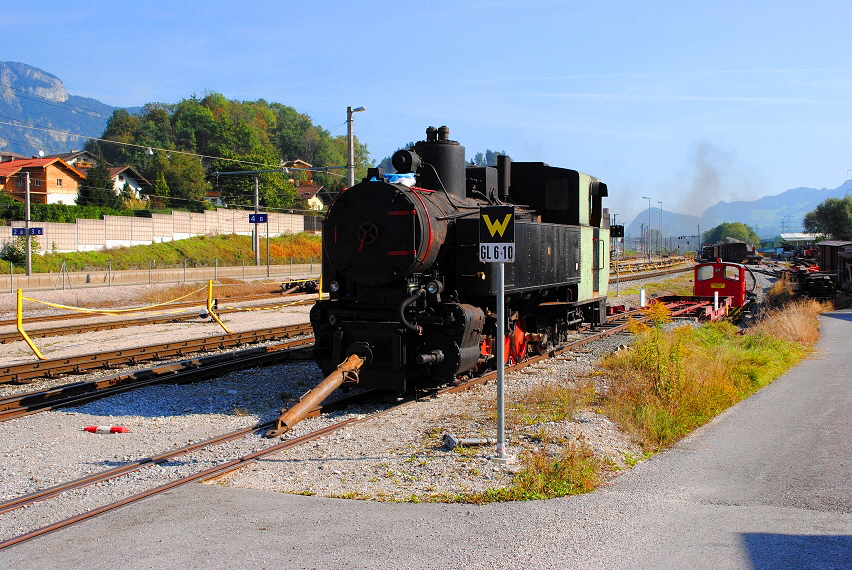 In den letzten Jahren beschaffte die Zillertalbahn zwei gebrauchte DIEMA Diesel Lokomotiven von der Fa. HOLCIM AG in Brunnen in der Schweiz, für den Verschub im Bahnhof Jenbach. Diese kleinen Lokomotiven sollen dann die betagte O&K D 12 ablösen. Am 24. September 2016 steht eine der beiden Lokomotiven neben der Gmeinder D 13 vor dem Depot in Jenbach. Hier wird der Größenunterschied besonders deutlich. |